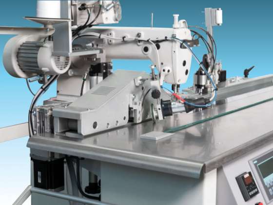The machine is equipped with an automated cutting-thread system to separate the different pieces before the stacker. The speeds of the sewing and the conveyor are adjustable electronically.